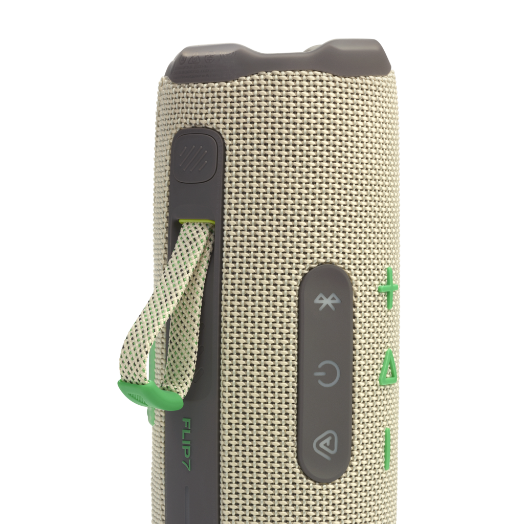 JBL Flip 7 喇叭採用 77% 的消費後回收塑膠和 100% 回收布料製成喇叭網格。它還以FSC 認證的大豆油墨印刷紙張包裝。