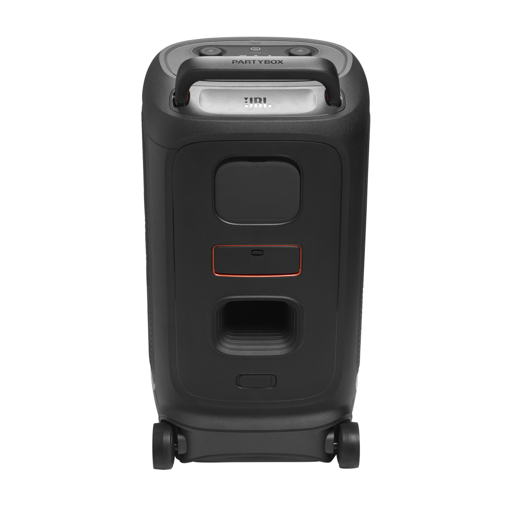 PartyBox 520 隨時待命,伸縮式把手與耐用滾輪設計,讓移動更平穩順暢。