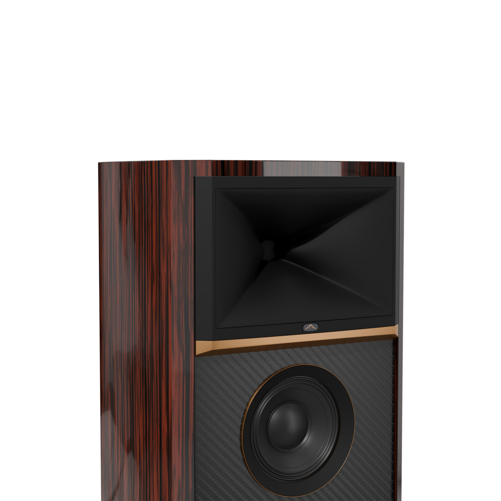 中低音單體:JMW200SC:8 吋(200mm)Hybrid Carbon Cellulose Composite Cone(HC4),雙反向彈波、2.5 吋音圈、鑄鋁框架與摺邊式懸邊