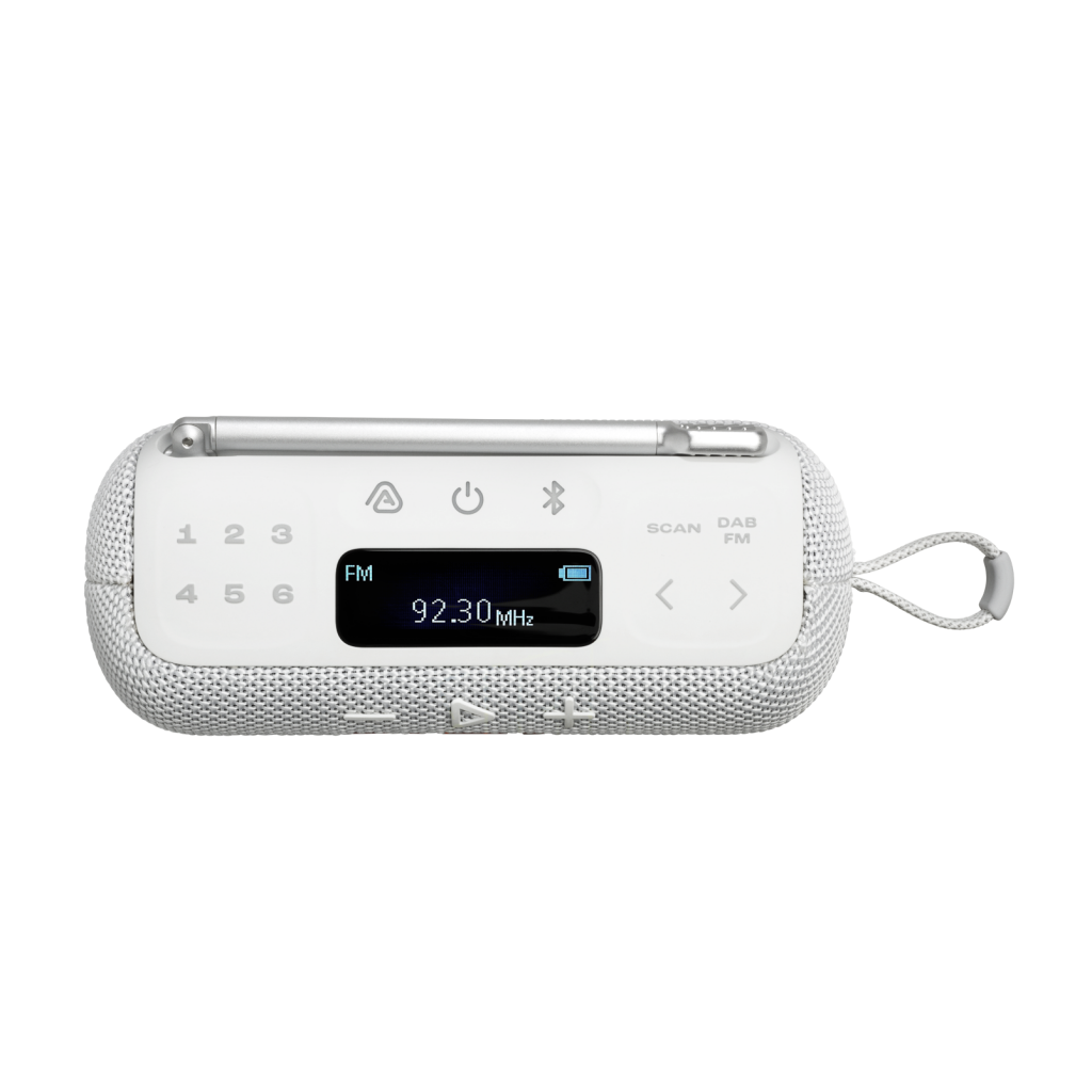沉浸在吸引人的全新廣播體驗中,盡情享受聆聽樂趣。可攜式 JBL Tuner 3 收音機可鎖定您最愛的 DAB/DAB+/FM 廣播電台與藍牙串流,無論是在廚房、泳池畔、營地或任何地方,都能播放宏亮清晰的 JBL 專業音效。升級的單體設計,讓音量足以填滿任何空間,帶來真實且震撼的聲音表現。大型清晰的 LCD 螢幕顯示電台資訊,搭配 Playtime Boost 功能,最長可享 15 小時播放時間。防塵防水設計與堅固環扣,讓您在室內外任何場景都能安心隨行。