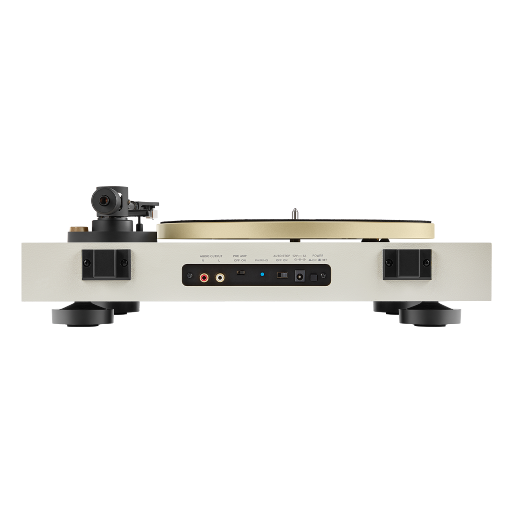 鋁製唱盤透過皮帶傳動和下方的光學感應器馬達,確保您的唱片以33 1⁄3 rpm 的速度完美播放專輯,並以 45 rpm 的速度播放 EP 和單曲。